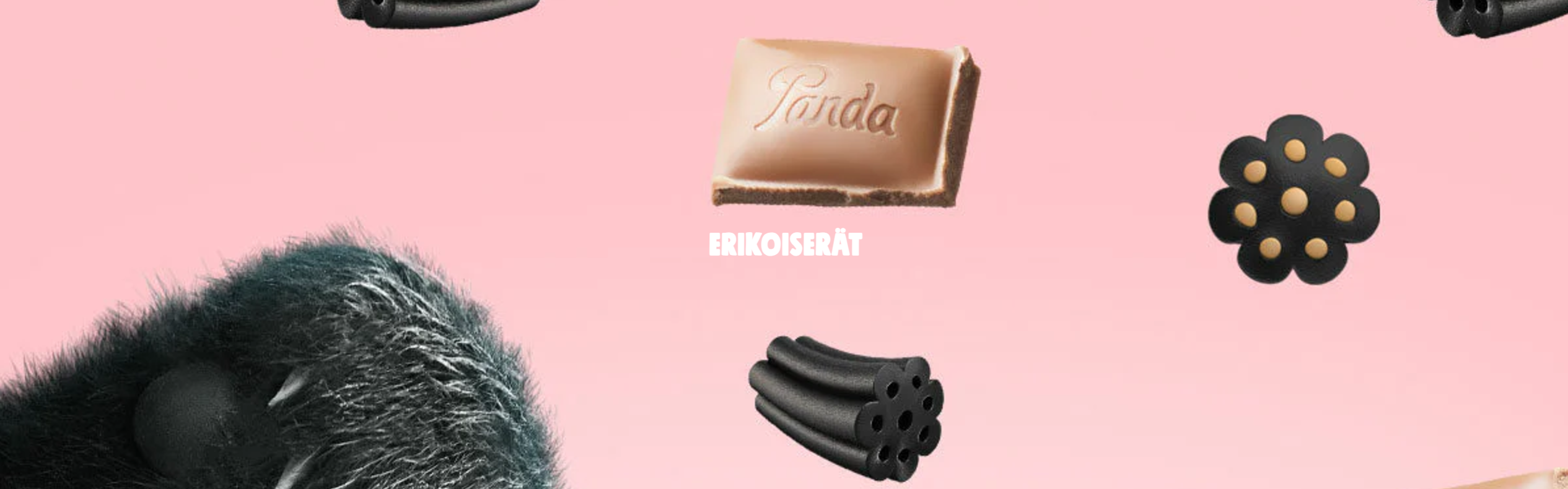 Pandan suussa sulavat lakritsit ja suklaat isoissa monipakkauksissa, sekä erikoisempia sesonkiherkkuja joita et saa muualta kuin Tehtaanmyymälästä. Ole kuin Panda - tilaa herkut netistä!