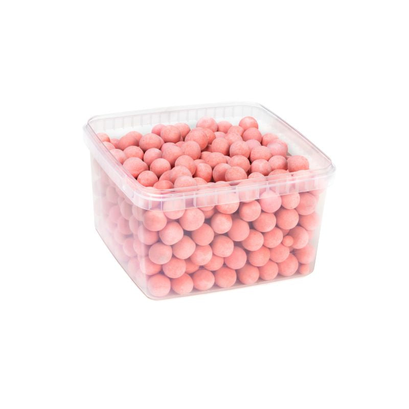 Salmiaklakrits täckt med vit choklad (48 %) och tunt jordgubbssmakande dragée skikt.